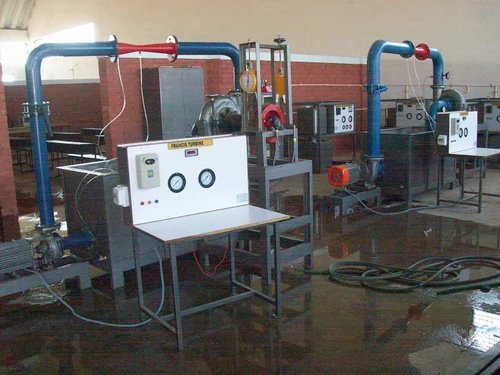 Centrifugal blowers test rig are in series, driven by a single motor, delivers air for a high altitude test rig for automotive engines. We design various testing equipment for mechanical engineering labs.